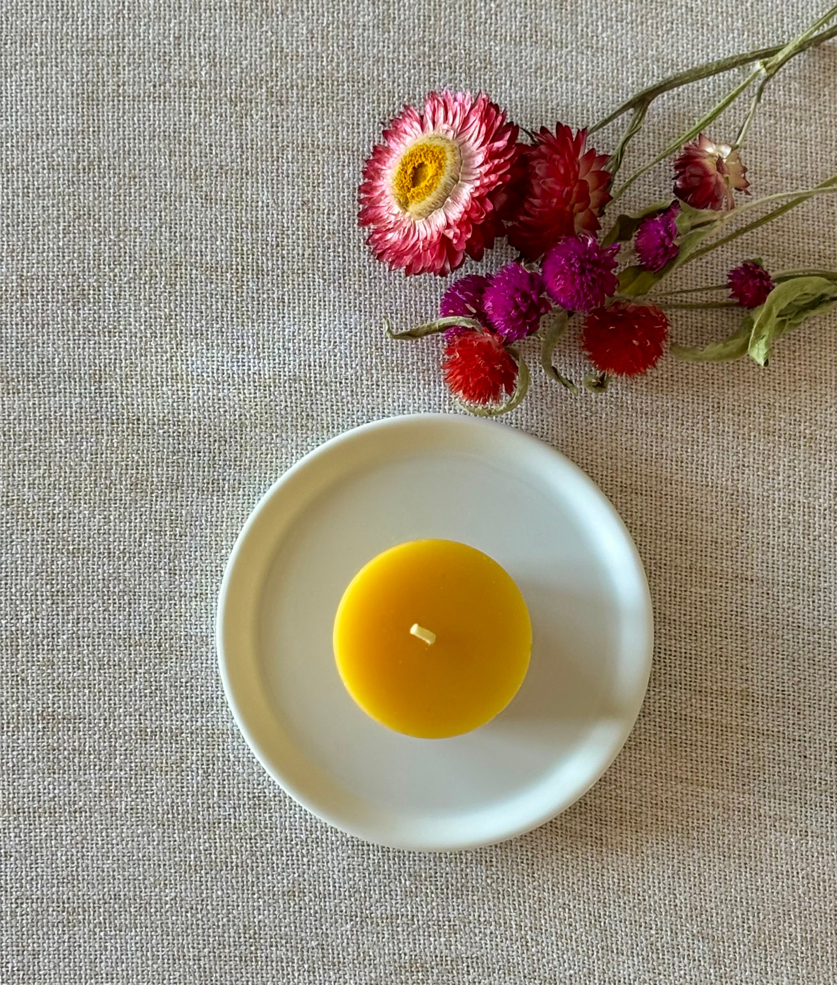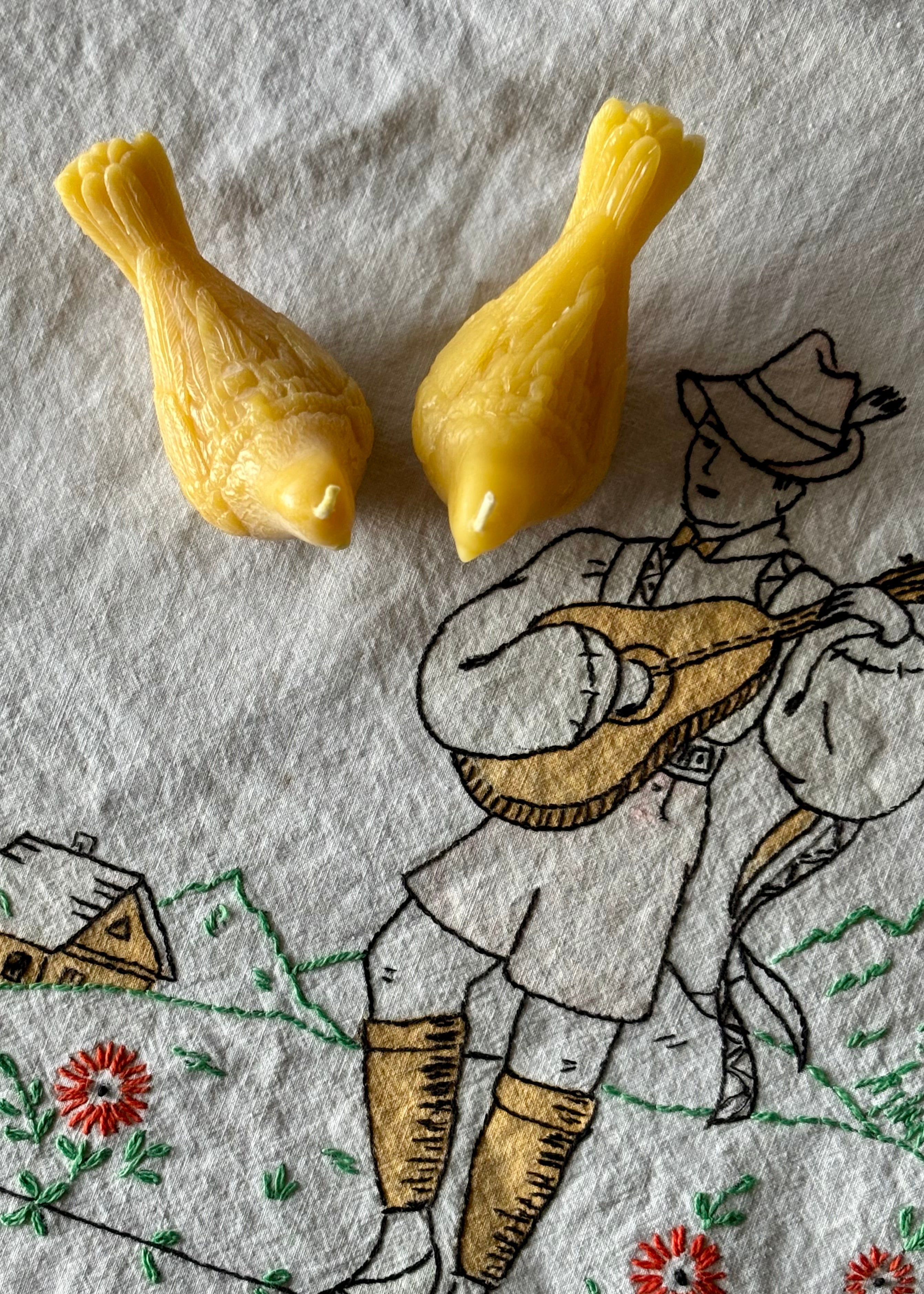 Our candles are made of 100% pure beeswax filtered by hand and sourced from local bee farms in Central PA. Just pure beeswax with a cotton wick.